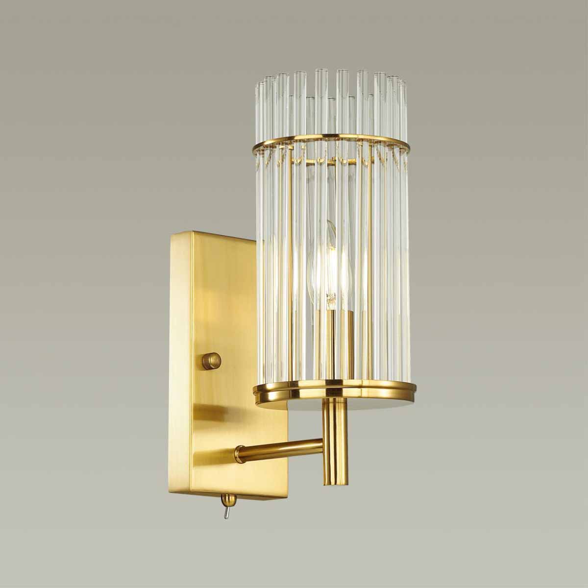 Светильник IP20, Светильник 60 Вт, Светильник на стену, Светильник в спальню, Бра в спальню, Светильник на кухню, Светильник в коридор, Желтый светильник, Светильник золото, Бра золото, Светильник 220В, Светильник E14, Светильник с выключателем, Светильник ODEON LIGHT |