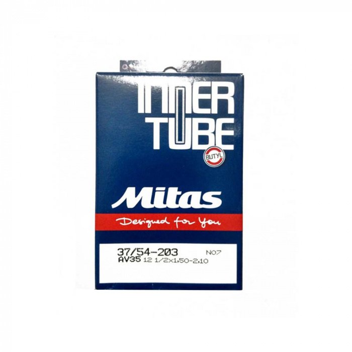 Камера, N07, 12" * 1.5/2.10", Schrader (SV), 35 мм, нипель 90 мм, угол наклона 90, Mitas, черный, 51 Mitas